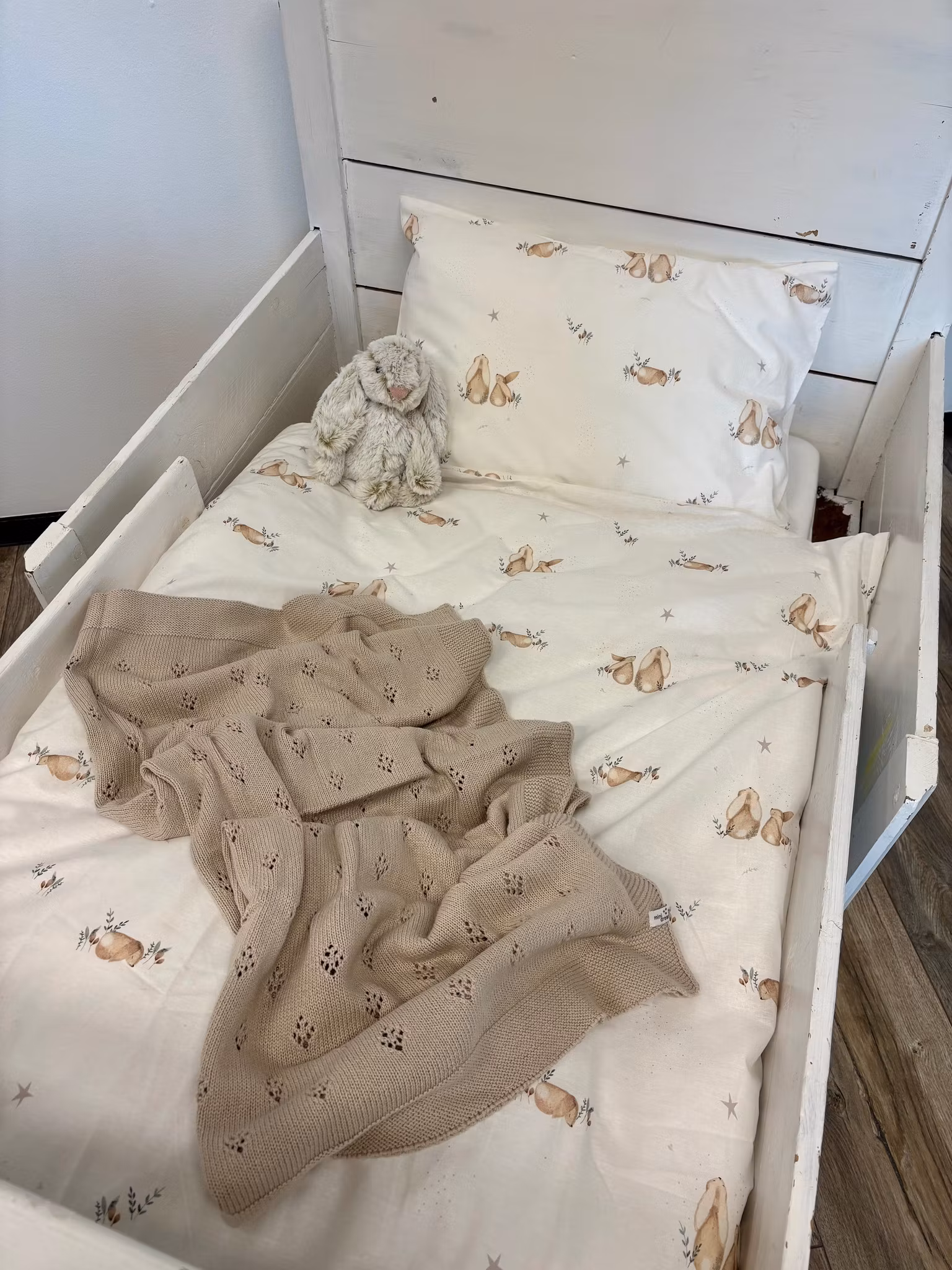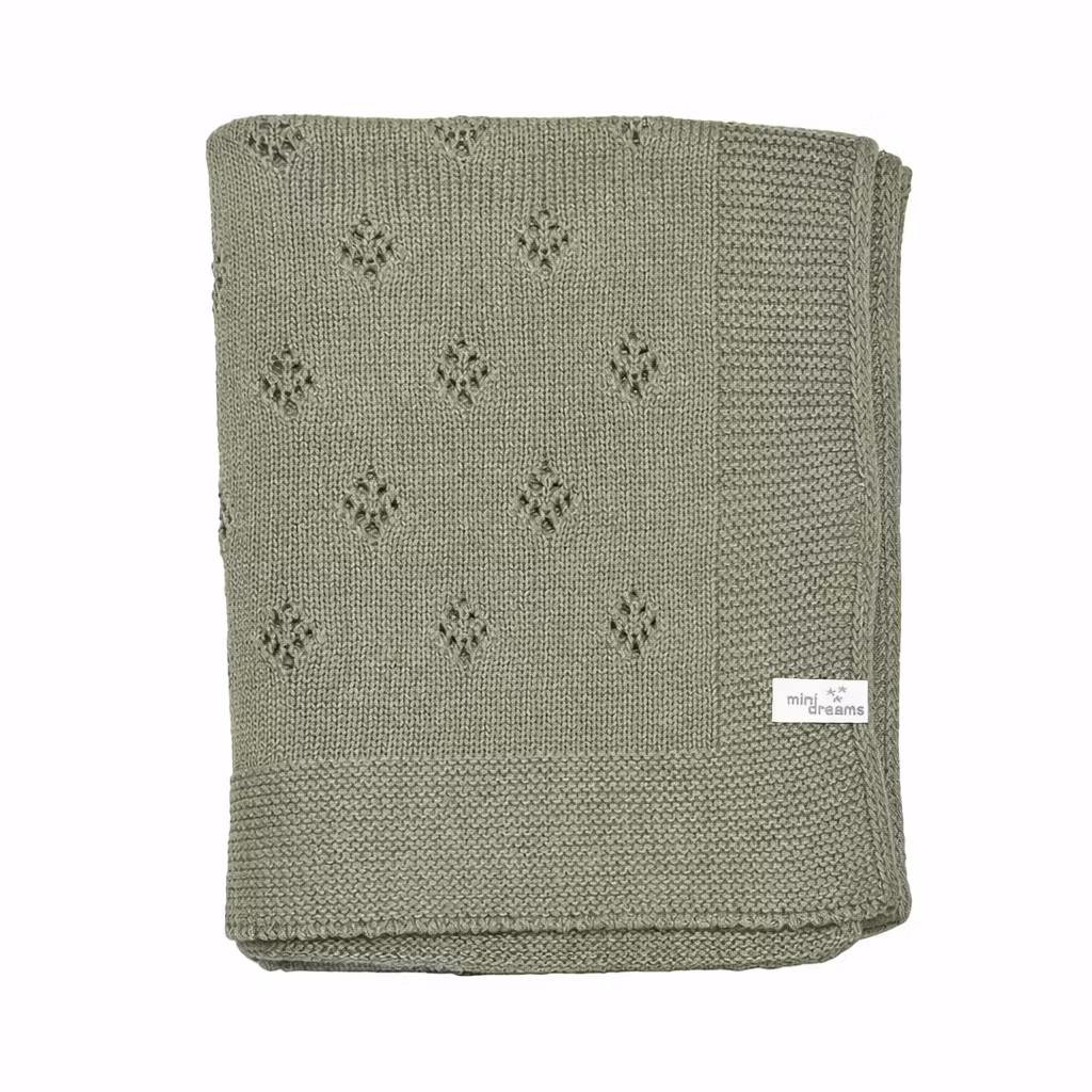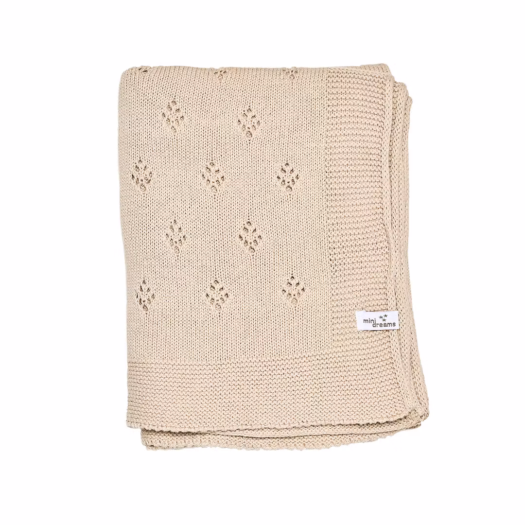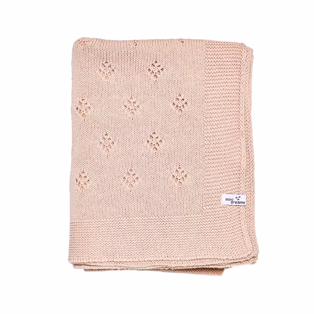 En vackert stickad babyfilt i 100% bomull med fint mönster som passar fint i tex vagn,vagga eller säng.Mått 75*100 cmTvätt 40 gr